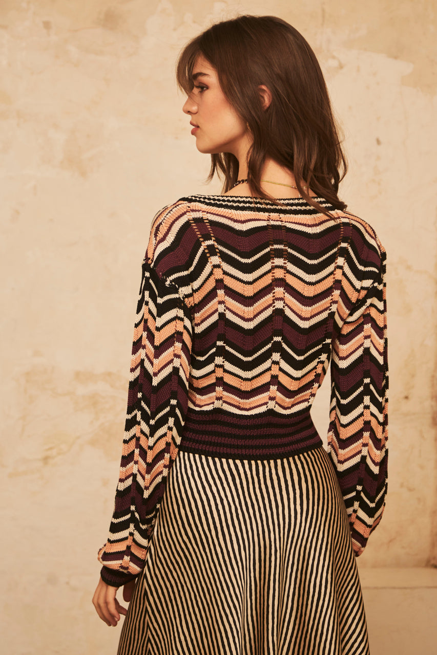 JERSEY CROPPED MANGA LARGA JACQUARD ZIC ZAG TRICOLOR - BLACK