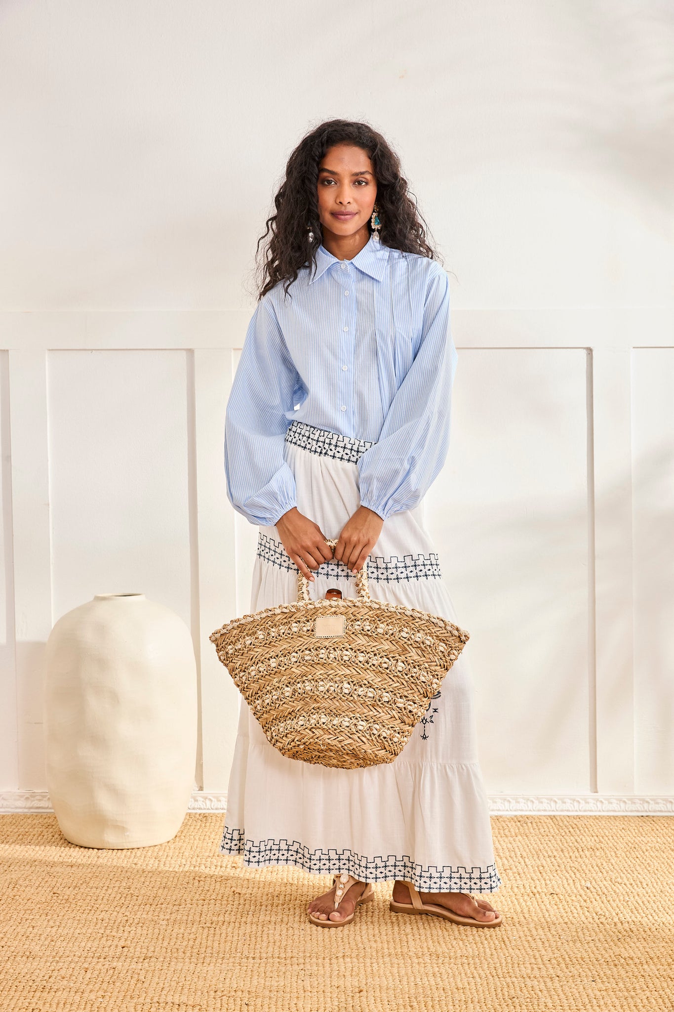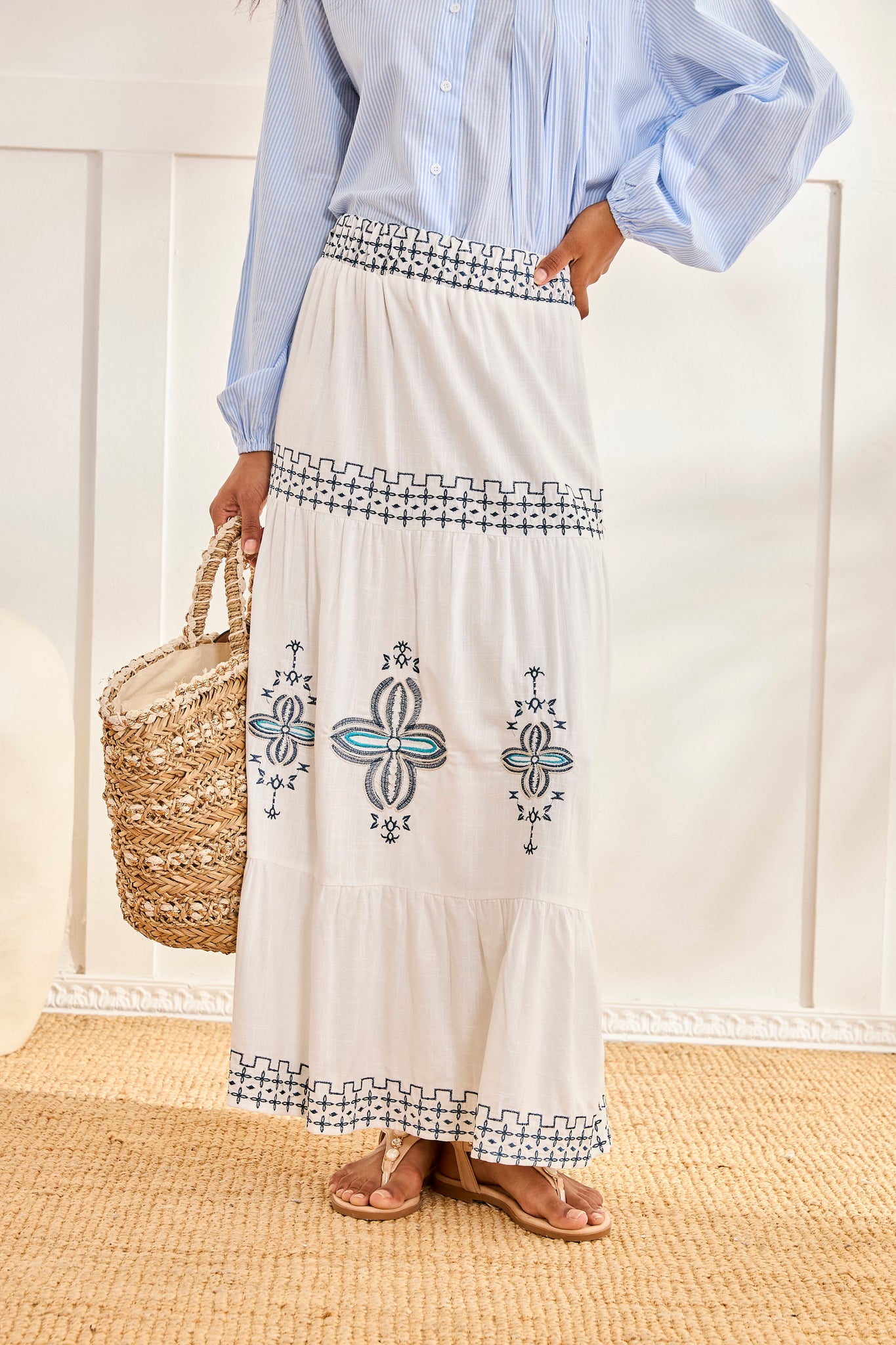 FALDA LARGA BORDADO ÉTNICA - CRUDO