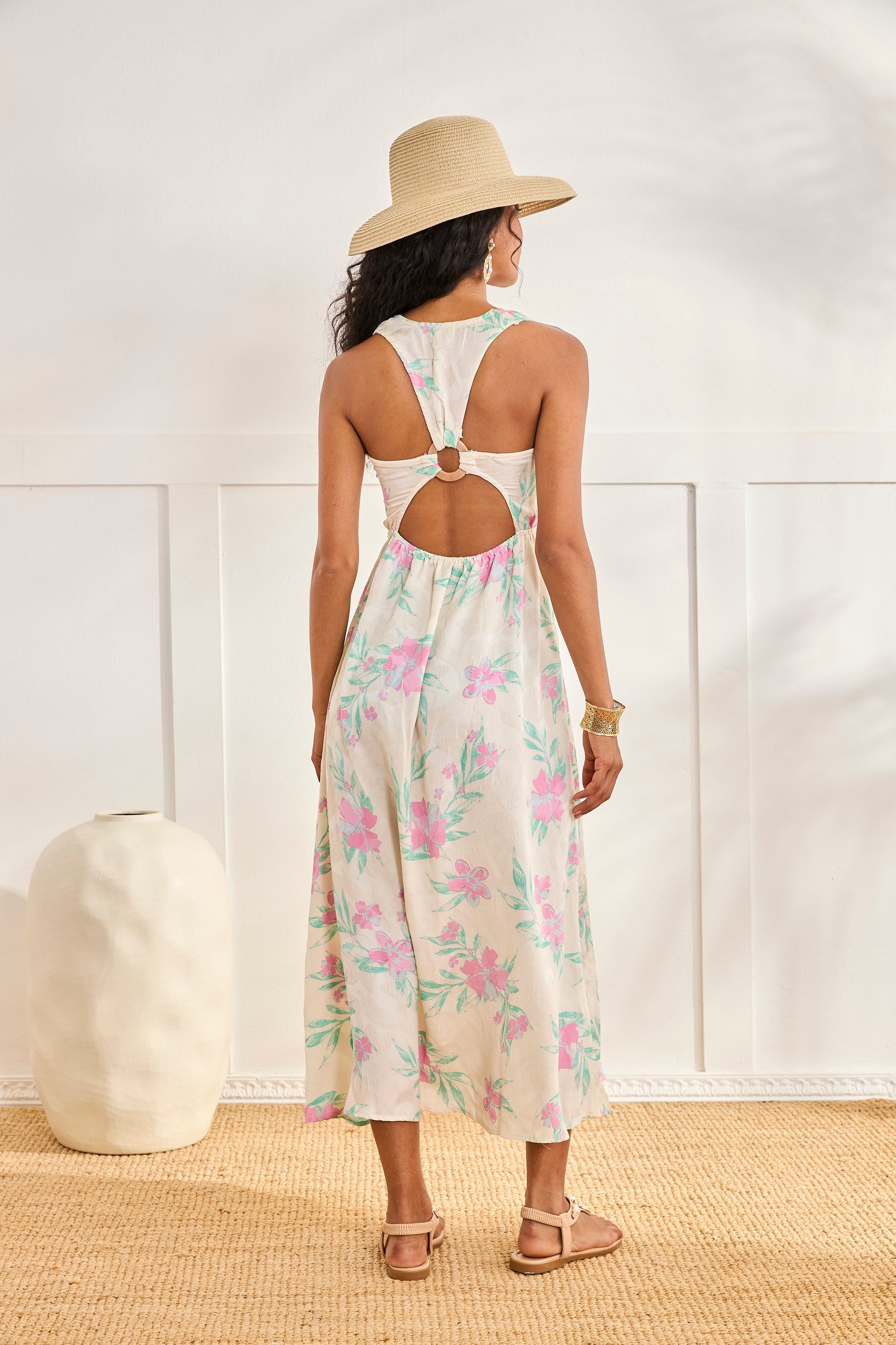 VESTIDO JAQCUARD FLORAL - CRUDO