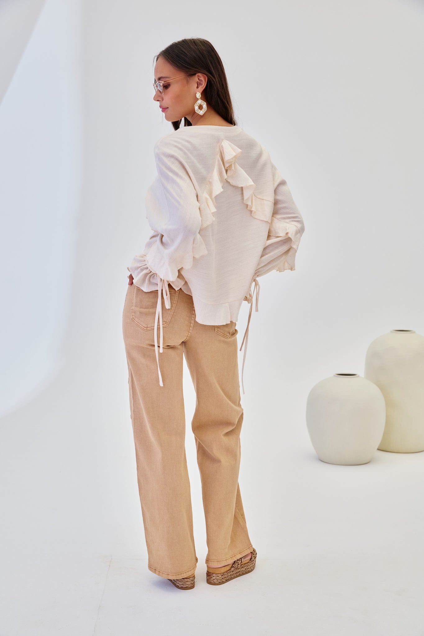 BLUSA VOLANTES Y LAZOS - CRUDO