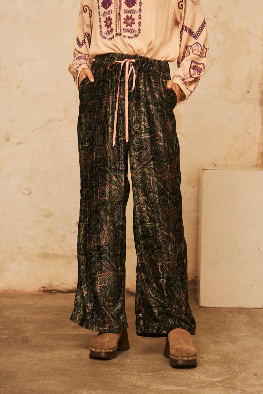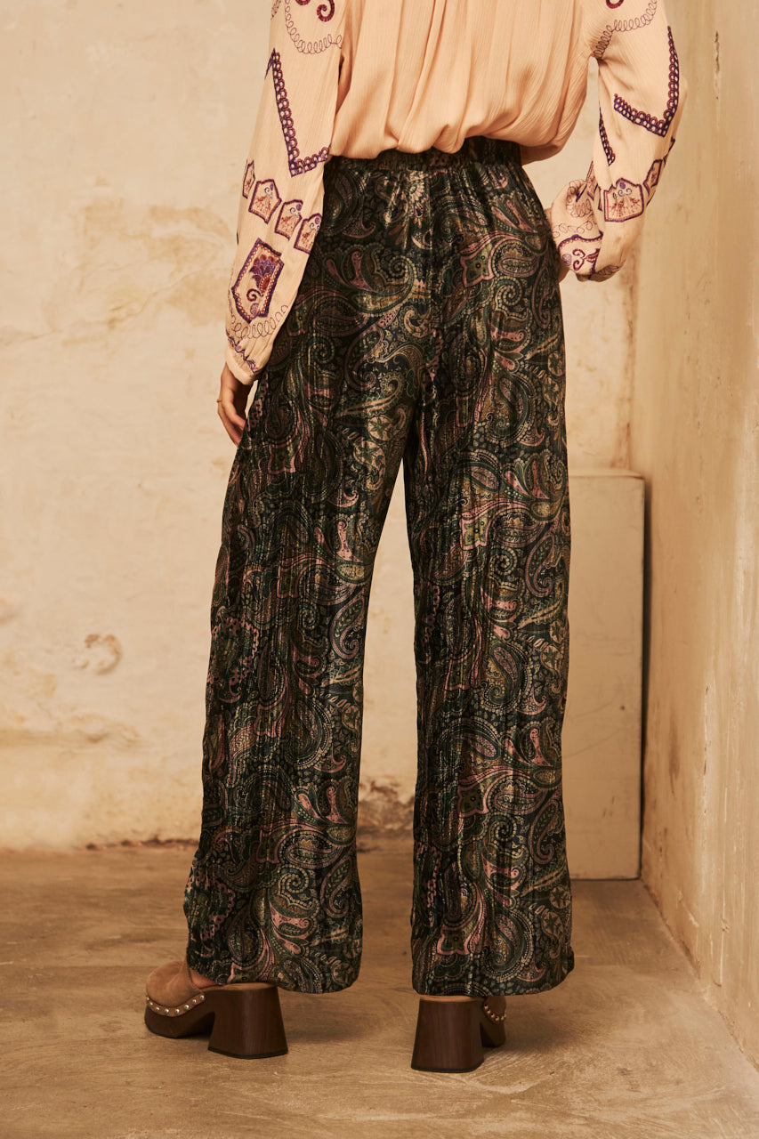 Pantalón recto estampado. Cintura elástica. Tejido plisado.