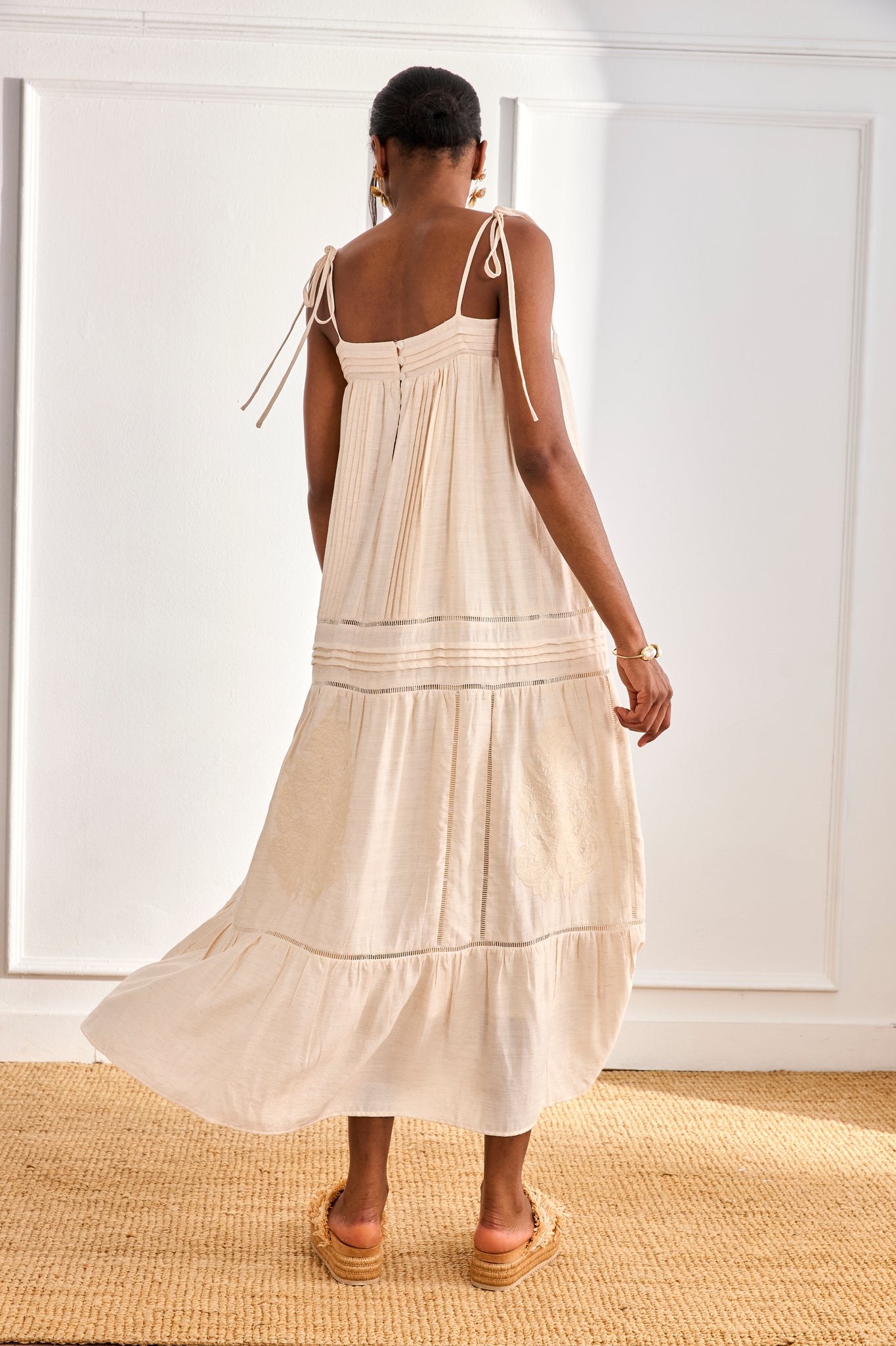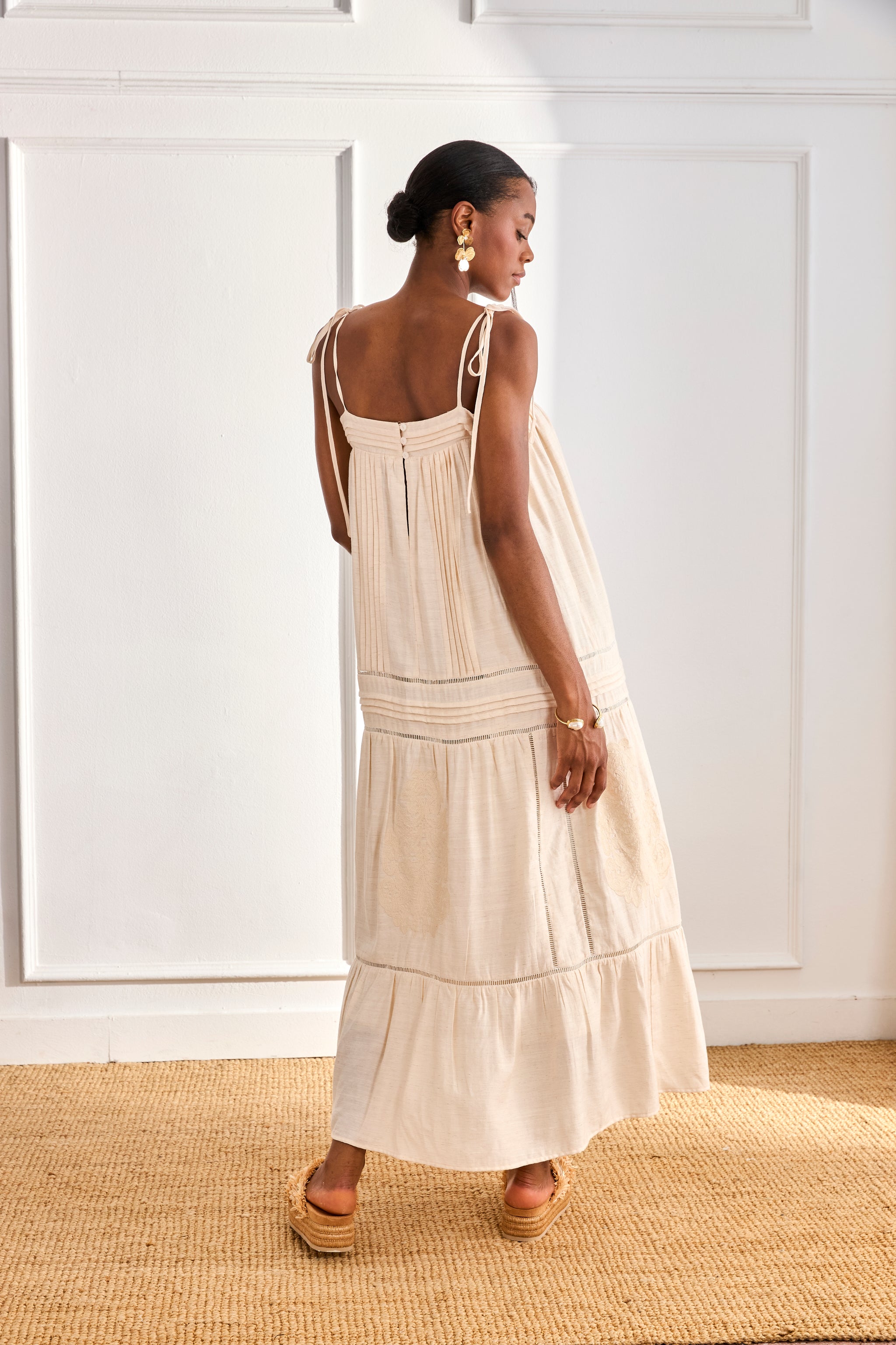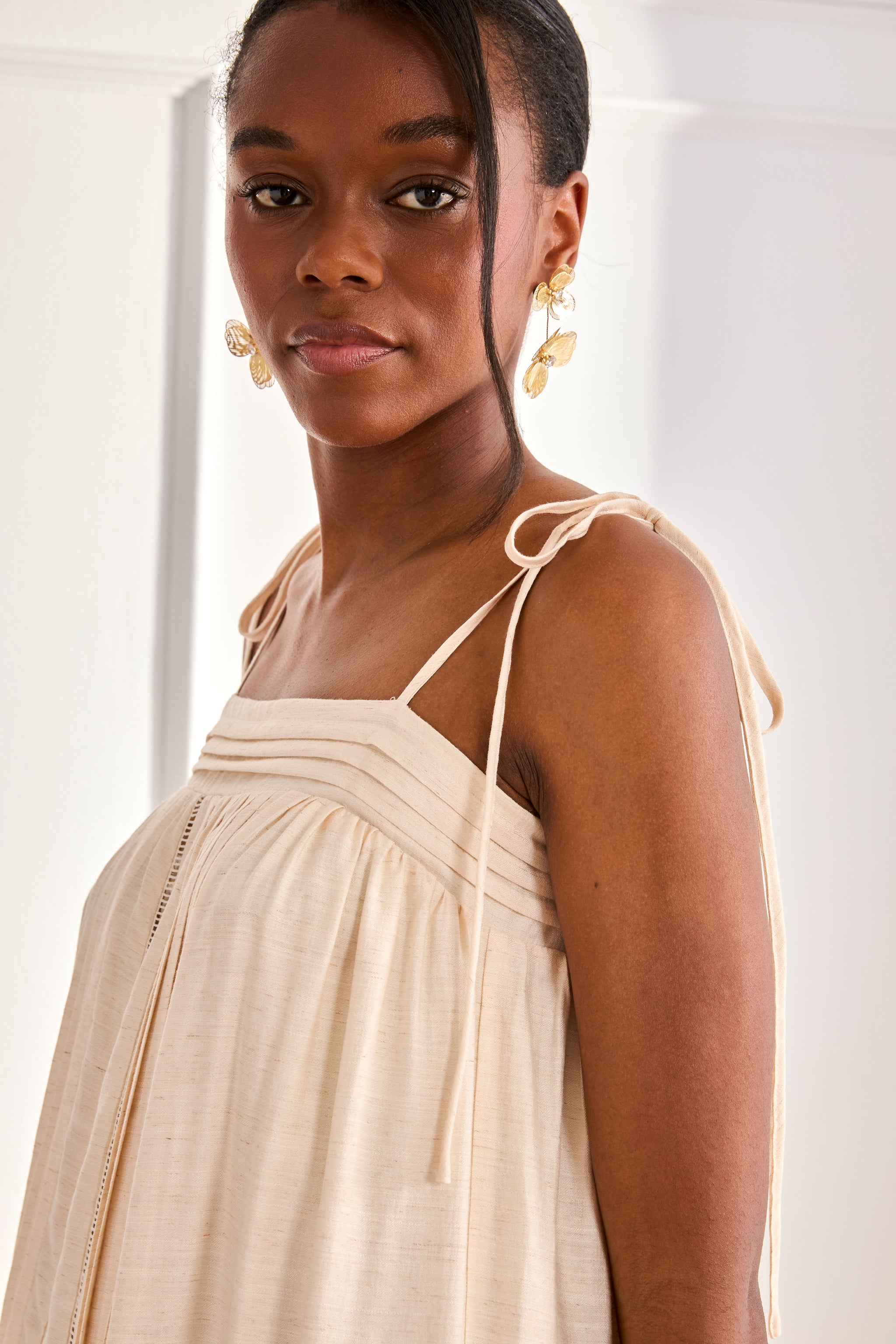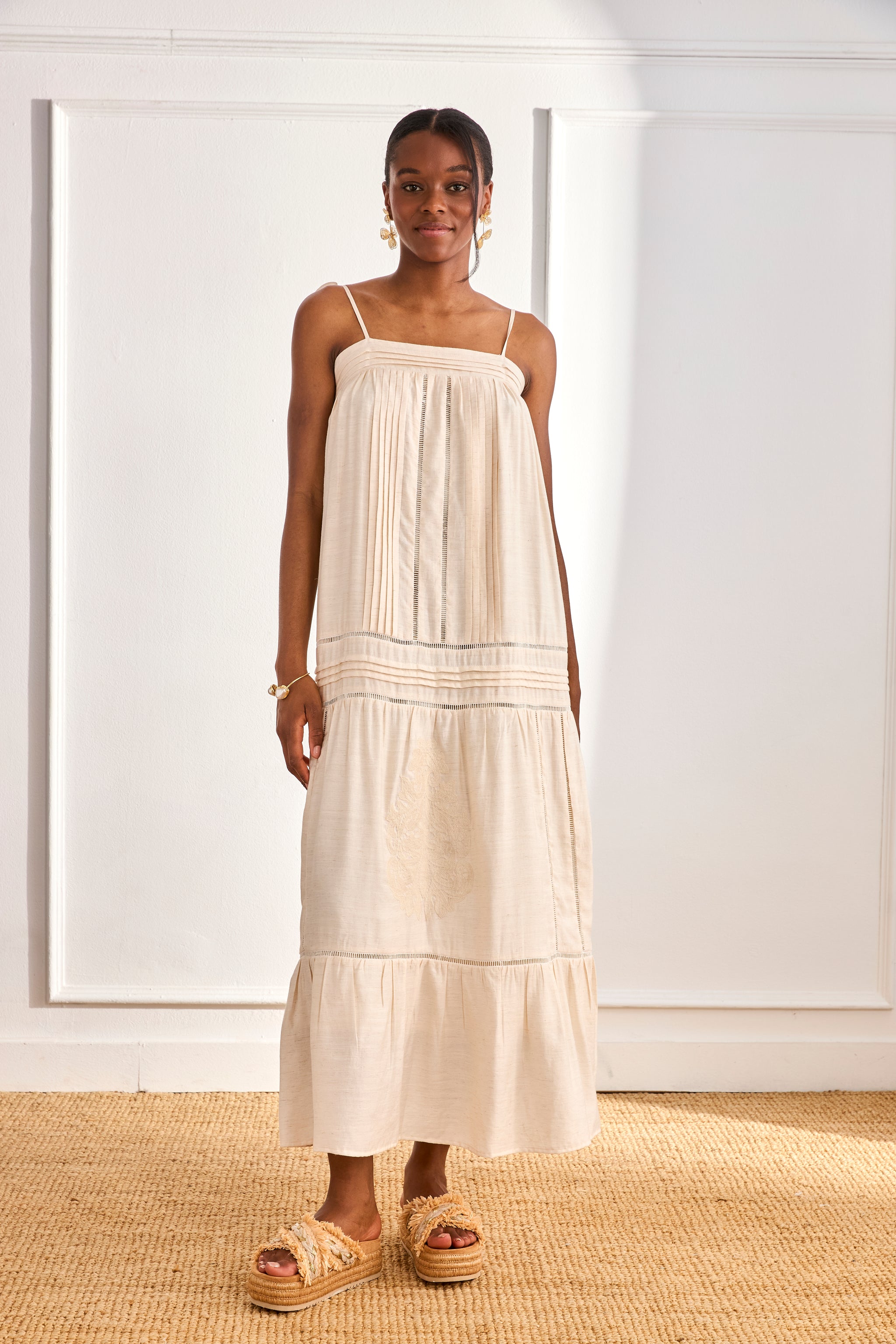 VESTIDO PLISADOS Y CALADOS - CRUDO