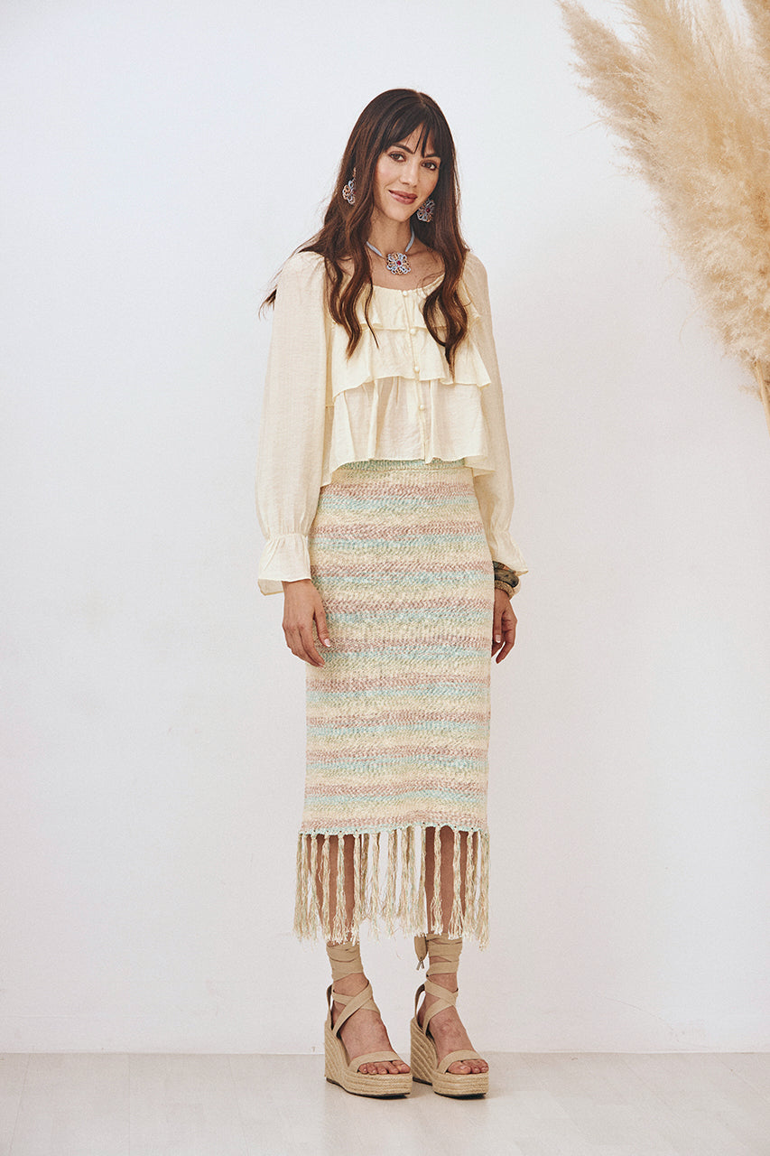 FALDA PUNTO ALGODÓN LARGA RAYAS - CRUDO