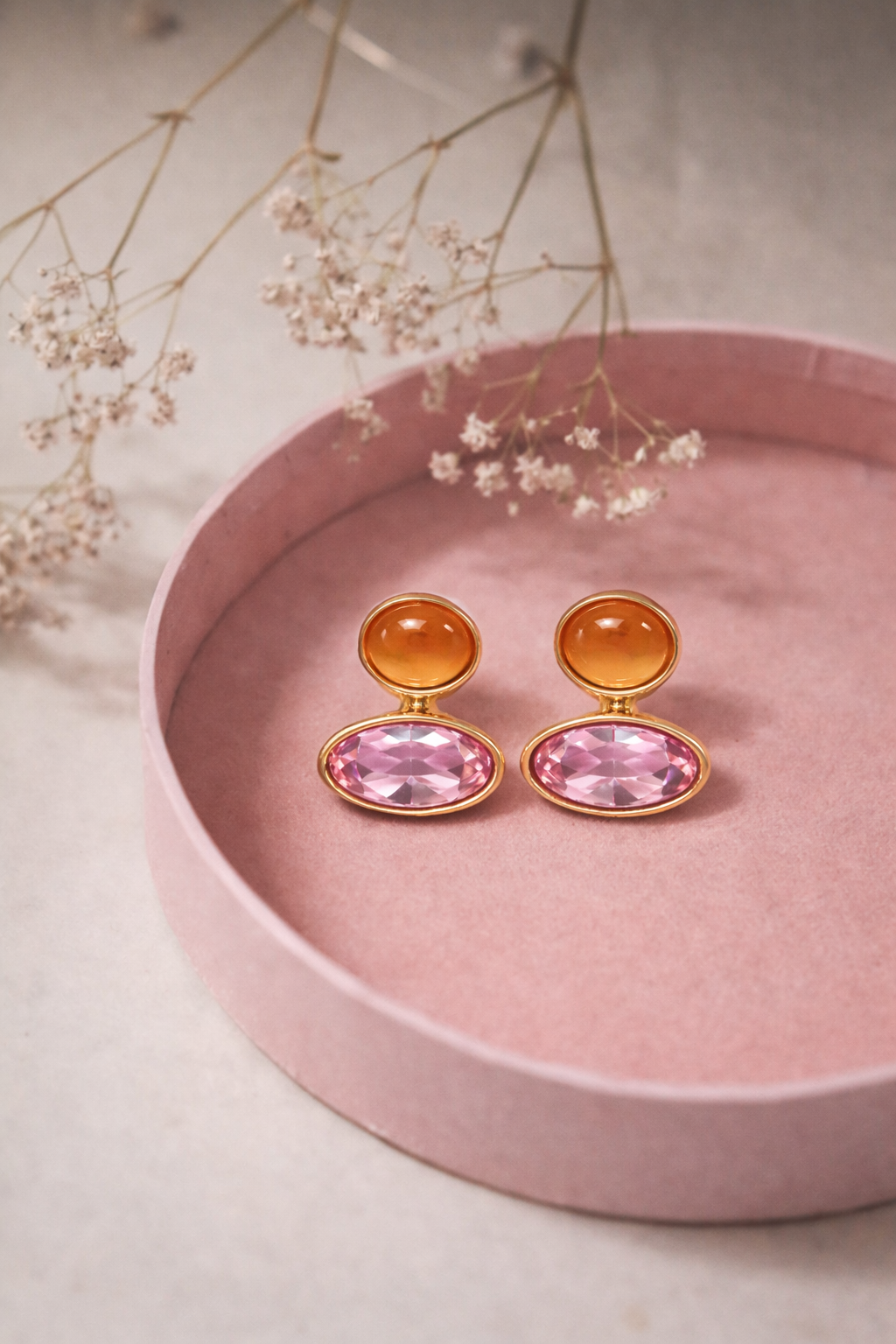 PENDIENTES DOBLE PIEDRA - ROSA